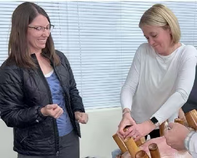 当现代解剖学的精准体系遇见传统中医指针疗法的深厚智慧,一场启迪思维、促进交流的专业课程应运而生。20251119日,“基于解剖神经根分布的神经肌肉走向的指针疗法”特色课程在天华楼164成功举办。本次课程由张荣健教授主讲,面向康复治疗学(中美合作)专业学生,并特邀两位来自美国威斯康星协和大学的康复治疗专业教授参与交流。课程深入浅出地演绎了中西医融合的治疗逻辑,生动展示了指针、游罐等中医技艺的临床价值,为康复人才培养与国际对话搭建了专业平台。