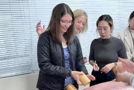 在拔火罐演示中,通过体表负压形成的罐印,张教授生动阐释了其与气血运行、身体状况的关联,直观传递了中医“治未病”与辨证施治的核心理念。此次演示不仅是一次技艺展示,更是一场深入的中西医对话,让国际同行切身感受到中医在疼痛管理与功能康复中的独特价值。