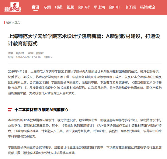 标题:上海师范大学天华学院艺术设计学院启新篇:AI赋能教材建设,打造设计教育新范式
