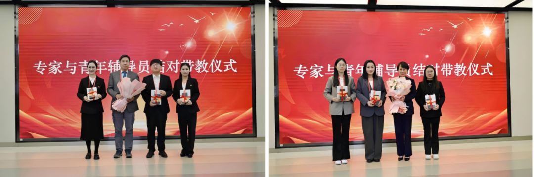 在结对带教仪式上,“师傅”向“徒弟”赠送了人民教育家于漪老师的著作《教育魅力:青年教师成长钥匙》,希望青年辅导员们认真弘扬教育家精神,争做学生成长成才的引路人;17位青年辅导员一致表示,要向老师们认真学习,努力为党育人、为国育才,踔厉奋发,不负厚望。