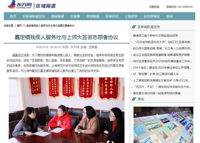 东方网:嘉定镇残疾人服务社与上师大天华学院签署志愿者协议