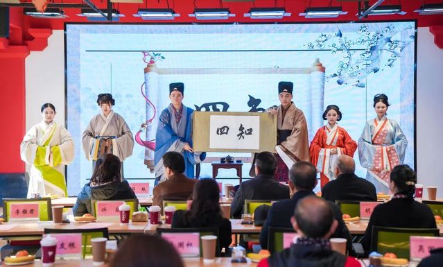 据悉,嘉定工业区充分发挥驻地传统文化师资资源优势,与上海师范大学天华学院联合举办中华传统廉洁文化专场活动,这是廉洁文化与中华传统文化融合、政校共建联建的一次生动实践。活动中,在校学生编排展演了课本剧《杨震暮夜却金》、汉舞《诗经·采薇》、古诗词朗诵《孟子颂》等节目。