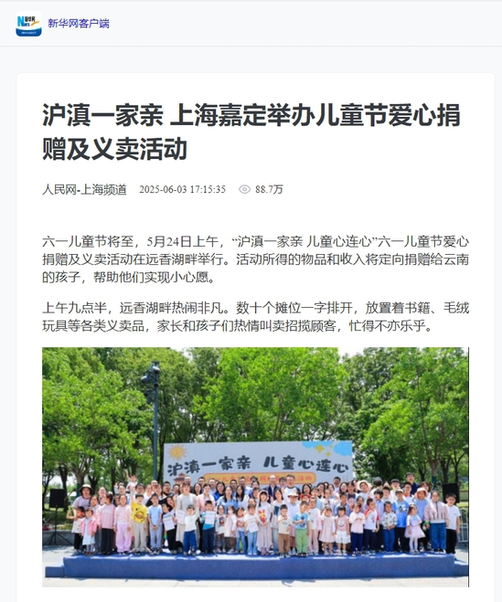 题目:沪滇一家亲 上海嘉定举办儿童节爱心捐赠及义卖活动