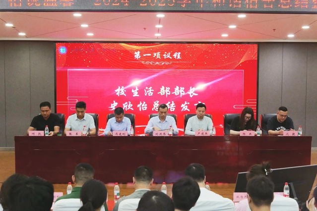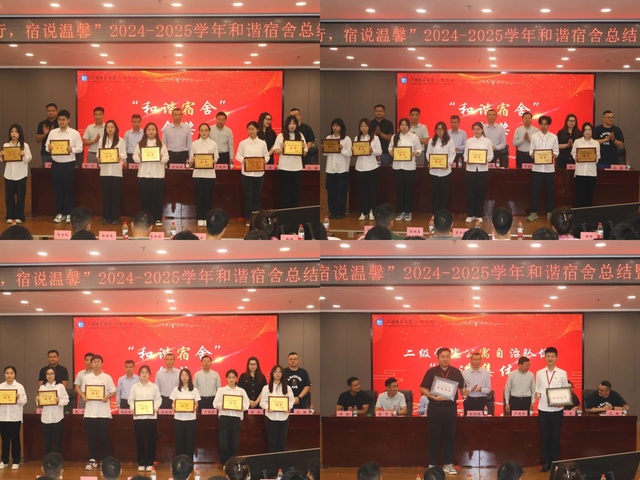 大会共八项议程。校生活部部长史欣怡首先汇报了本学年工作。学保处副处长张军详细解读了“和谐宿舍”与“先进集体”评选流程。随后,学保处副处长冯建刚宣读了“和谐宿舍”表彰决定:100间宿舍获“铜奖”(奖励100度电)、42间获“银奖”(150度电)、12间获“金奖”(200度电)。学保处副处长杨央宣读了二级学院公寓自治队伍“先进集体”表彰决定:语言文化学院和健康学院获“先进集体”称号。颁奖仪式后,金奖宿舍代表陈晟同学分享了寝室管理经验,先进集体代表梁巍瀚老师介绍了学院三级联动管理机制。最后,刘洪伟处长强调严守安全底线、共建和谐寝室的重要性。