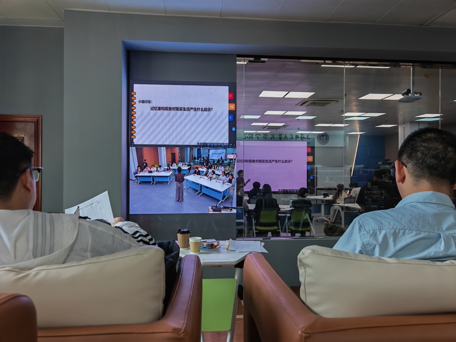 课后,3位来自外校的专业评委,走出单向镜面背后的观摩室,在教室里留下几位听课学生继续“测评”。学生们座谈中纷纷发声,认为对刚才课上老师讲授的记忆原理与规律掌握较好,印象颇为深刻。这一课堂反馈纳入总分,独立占比达10%。上海师范大学心理学院副院长罗俊龙教授也直言评价,对于“情绪与记忆”的关系,当前学术研究并无定论,甚至存在争议,而当堂老师向学生讲解的只是正面情绪促进记忆的一面,其实负面情绪也可能让人刻骨铭心。“因此,教学最好兼顾情绪与记忆的‘两面性’,并非完全正相关或负相关。”