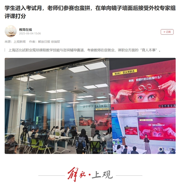 原文链接:学生进入考试月,老师们参赛也蛮拼,在单向镜子墙面后接受外校专家组评课打分