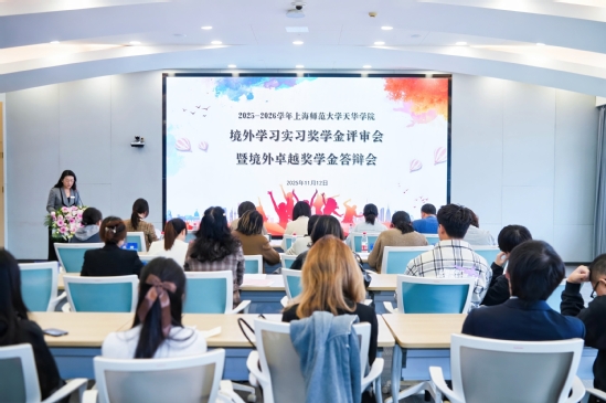 2025年11月12日,2025-2026学年境外学习实习奖学金评审会暨境外卓越奖学金答辩会在明华楼远程教学中心召开。出席本次活动的领导老师有:天华学院党委副书记、副校长许岳,天华学院副校长、商学院院长程葆青,健康学院院长徐晓峰,人工智能学院常务副院长吕博,国际交流处处长、北亚利桑那学院常务副院长胡雅楠,学保处处长刘洪伟,商学院副院长韩聪颖,语言文化学院副院长孙超,教育学院副院长杨悦,财务处副处长吴冬晖,国际交流处副处长夏智源,教务处处长助理陈珊,审计法务处处长助理马天天,国际交流处教师陈笑、王樨婷,本次评审会由国际交流处教师赵诗佳主持。