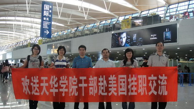 9月21日上午,天华学院首批干部赴美国挂职交流,院领导赴浦东机场送行。
