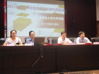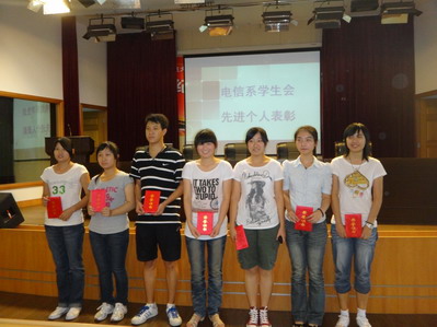 | 电信系于9月17号下午14点30分,在明华楼报告厅举行了新生专业教育暨家长见面会。系主任王坚教授、系常务副主任陶亚雄教授、系指导教授郭爱煌、电信系党总支书记顾绍元、系党支部书记刘香连及11级全体新生和家长出席了本次大会。本次大会旨在为新生介绍本系概况、课程设置以及专业发展前景。 大会最后举行了2010-2011学年学风建设先进个人及集体的颁奖仪式。2010级通信1班获得“五月学风建设月先锋集体”一等奖,2010级通信2班获得二等奖,2010级电子1班和2009级电子1班获得三等奖。(电信系) | ||