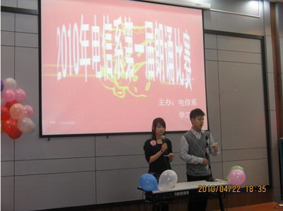 4月22日晚,电信系在日阶401举办了第一届朗诵比赛。学院党政办公室主任谢吕法、电信系团总支书记邱欣寅、电信系副辅导员朱锦荣和徐珊珊作为评委出席比赛。 本次大赛的主题为“诗情天华,抒学子豪情”,以此献给母校建校五周年贺礼。经过激烈的角逐,08通信2班张颖获一等奖、09通信2班刘春燕获二等奖,09电子班石彪和09通信1班王雪影、霍然获三等奖,09通信2班王茜、阳婷、杨滨嘉获最受欢迎奖。 (孙伟) |
