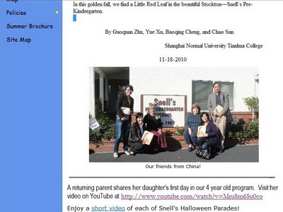 | 天华学院首批赴美交流干部去过的一个幼儿园在他们网站上发的报道和照片。下面是它的链接: http://snellsprek.com/Parent-Share.html | ||