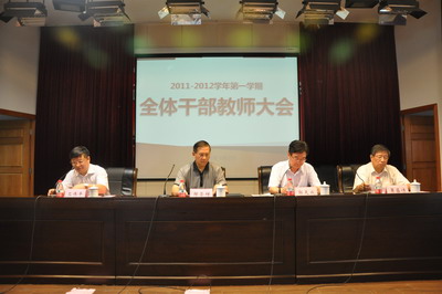 | 9月2日,学院在明华楼五楼报告厅召开2011-2012学年度全体干部教师大会。董事长邹荣祥亲临大会并作年度工作报告。全体中层以上干部、后备干部、全体教师和全体正副辅导员出席会议。党委书记郭天成主持会议。 | ||