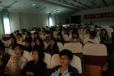 | 2011年4月27日晚,经管系再次邀请Starbaby创始人大丹开展“信仰与爱”的主题讲座。讲座现场,温情四溢,掌声迭起。大丹以感人的事例和诙谐的语言,诠释了如何感恩、如何关爱自闭症、关爱身边的人。同学们感悟良多。(夏丽萍) | ||