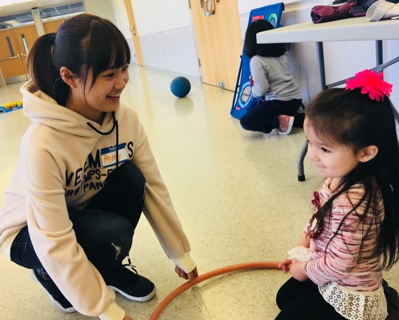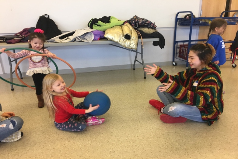 (2015级中美学前专业学生与小朋友玩破冰游戏)