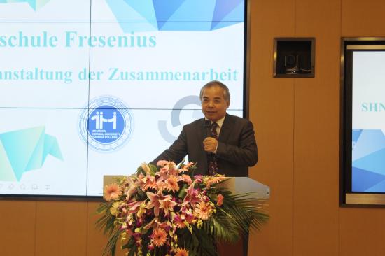 上午11:00,由我校与德国欧福大学开展课程合作的2017级德语专业开班仪式隆重举行。首先,我校叶才福校长对德国欧福大学一行领导和嘉宾来校表示热烈的欢迎并对我校情况做了简要的介绍。他在致辞中提到,我校一直致力于培养“专通雅”协调发展的高素质人才,坚持“为做人而学习”的校训,为社会输送了一批又一批既能用外语流利表达又能用专业知识解决实际问题的人才。同时鼓励同学们要目标坚定,坚持不懈,在提高外语水平的同时,也要牢牢掌握专业技能,为赴德留学打下基础。