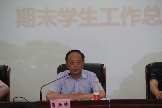 最后,曹书记对学期工作进行了点评,对表现优异的集体和个人进行了表扬,对学生管理工作中存在的问题进行了总结,提出了“敬业、担当、创新、安全、凝聚”的工作要求。