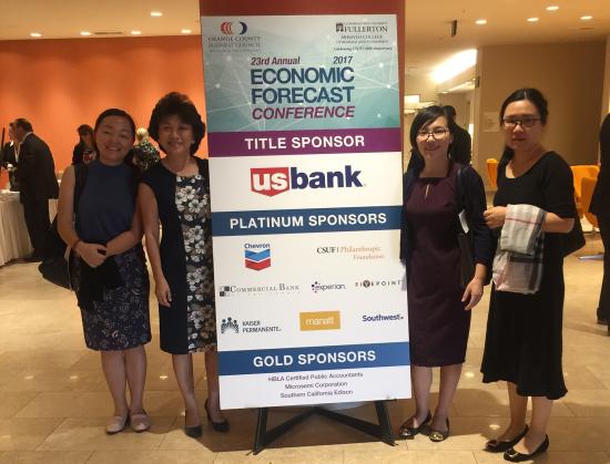 “The Nation, Southern California And Orange County 2018 Economic Forecast”(2018经济预测会议),由ORANGE COUNTY BUSINESS COUNCIL,MIHAYLO COLLEGE OF BUSINESS AND ECONOMICS主办,US BANK 承办,加州州立大学商学院知名教授做出了2018年美国、南加州及橘子郡的经济发展预测,涵盖GDP、国际贸易、劳动力市场、不动产、物价指数等多方面的经济增长及预测,详尽的数据分析,提拱了美国经济社会发展的大量信息。