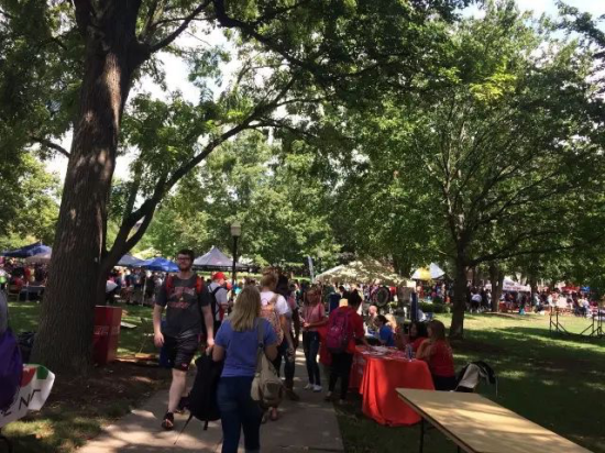 美国大学里没有同一班级一起生活到四年的概念,所组成的班级都是由选择相同课程的同学组成的,社团才是学生活动的主战场。ISU每年新学年开学后一周,学校社团和赞助商会共同举办一个Festival ISU(简称“校园节”)学校所有的社团和赞助商都将来到QUAD中心摆摊(Booth),活动比迎新晚会的热闹程度有过之而无不及,也有人形容为“跳蚤市场”或“创意市集”。有豪车社,足球社,亚洲人社,按摩社,…他们为了招徕新人,互动活动花样百出不惜血本;校园周边的赞助商雇佣大学生带来优惠券和打折活动。社团招进来新手,会组织不同训练活动甚至比赛,并按情况收费,比如吉他学习一节课5刀(约40元),足球队入队买设备225刀,也可以自带设备,有很多选择。