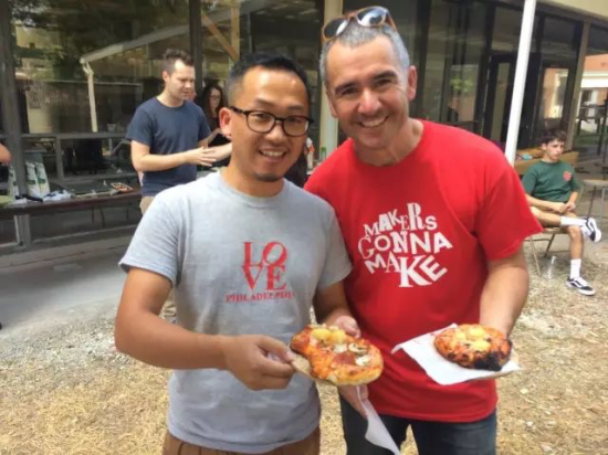 ISU艺术学院每年的新学年开学都要进行一次不一样的迎新。8月18日,抵达学校第二天“恰逢”学校开学,艺术学院的专业主任(Director)Michael Wille教授便邀请钟老师参加学院的现烤披萨野餐会,可以借机认识所有老师和部分新生。在学院的瓷器工作室后院建有一个露天的烤炉,每次迎新活动,主任便召集教师和新生来后院聚会烤披萨,并互相认识,气氛轻松活跃。学生与学生,老师与学生在完成披萨的制作过程中自由交流,马上就熟悉了。