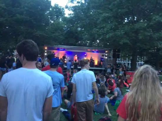 ISU每年秋季的迎新晚会,是极其盛大的晚会,不同年级的来自不同地方的新生在此聚集,共同庆祝升级。由社团和赞助商在学校中心区域的QUAD四合院摆摊迎新举行不同的互动活动,提供礼品、免费食物等吸引同学参与。比如最火热的莫过于新生音乐节,音乐舞台设计在学校的一辆大卡车上,只要把大卡车侧面车厢展开就是一个大舞台。学生只要选择喜欢的歌曲,留下名字,就能现场一展歌喉,由专业乐队伴奏。学生反应热烈,乐此不疲。