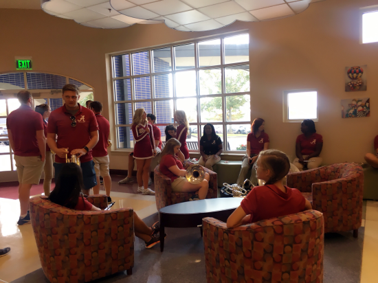 第一,传承阿拉巴马大学文化。阿拉巴马大学非常注重体育文化,在每年秋季的橄榄球赛季,附属幼儿园的教师都会邀请学校学生团体“百万美金”行进乐队(A Million Dollar Band)进入幼儿园和学生互动,将体育文化,特别是美式橄榄球文化带入幼儿生活。幼儿园资料室里还提供了以橄榄球为主题的各类绘本,教师可以展开主题绘本阅读。阿拉巴马大学拥有优美的校园环境,富有文化内涵的人文景观,以及富有体育特色烙印的校园文化氛围,在附属幼儿园的教室建构区,很多都贴有大学标志性建筑、教学楼等的照片,供幼儿在区角活动中参考,幼儿绘画作品中也广泛吸纳了阿拉巴马的大学符号。通过耳濡目染的环境熏陶,达到润物细无声的文化传承效果。阿拉巴马大学的办学理念、传统作风、治学精神这些深层的大学文化都通过一定的载体得到了充分的呈现。