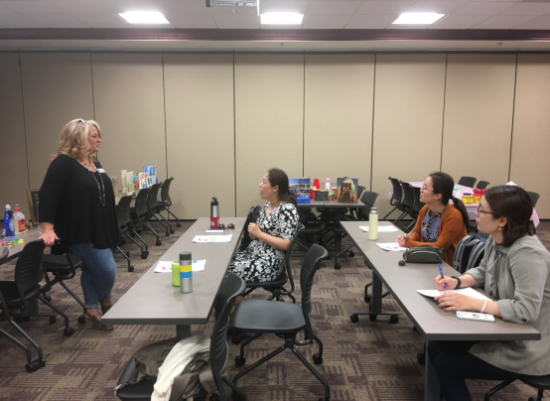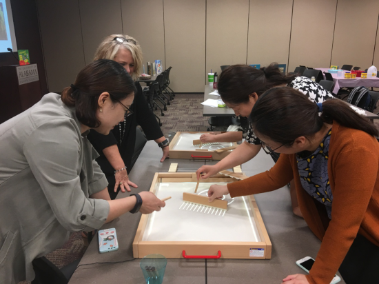 4月13日,阿拉巴马大学儿童发展研究中心专门为访学团教师提供了STEAM教育培训活动。中心的明星培训师Shanna Milligan为访学团四名教师提供了一场覆盖科学、技术、工程、艺术和数学教育的工作坊活动。尽管有老师在两年前就参加过她为本州幼儿教师进行的STEAM培训,可是本次工作坊活动中,所有涉及到的幼儿教育活动几乎都是全新的。访学团老师一进门看到Shanna老师为大家事先布置的活动场地,就深深被感动了——虽然只有4位学员,可她事先还是花了好几个小时准备教具,而工作坊活动结束后,她还得花几个小时整理教具。从Shanna老师那里,访学团教师不仅学到最新的幼儿教育方法、幼儿教育资源、如何将创新的教育理念变为创新的教学方法,更加体会到真正的好老师是什么样的:无私的奉献分享、不计成本的备课、不断的自我更新。