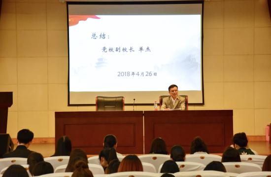 2018年4月26日下午4点20分,我校第二十七期高级党校入党积极分子培训班结业典礼暨总结交流会在明华楼五楼报告厅举行。党校副校长单杰出席并主持大会。