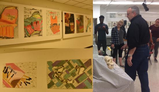 Drawing Fondmental课程是艺术学院学生绘画基础课,Crowley Tony教授在课堂中注重抽象思维的训练,并教大家去创造艺术形式,审视正、负形(positive area,negtive area),和权重(Value)所产生的美感。Tony教授要求学生不仅要掌握绘画基本技巧和不同材料的表现技法,还要求学生过渡到自己将来的专业,并学会将绘画的思维应用到将来的设计上,他的最终大作业是根据提供的一盒火柴,用炭笔、色粉、油画棒绘制一幅广告作品。