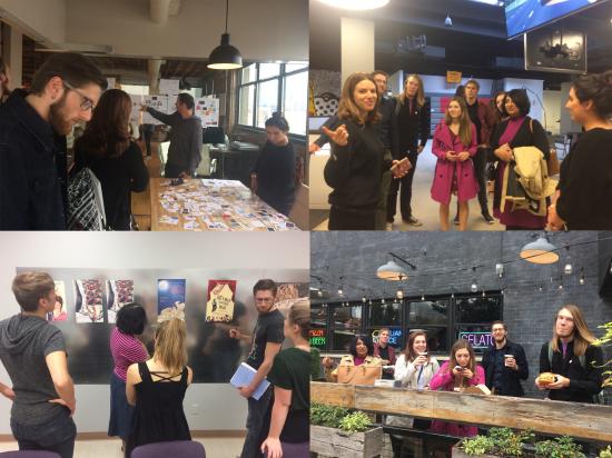 Shekara Achana教授的Intern in design课程,是工作室化教学的典型方式。艺术设计学院有个专门的设计工作室Design Streak Studio,工作室建立于1981年,是艺术学院的传统,每年的运行由教授上课的方式带领学生进行商业设计。我在跟随这个只有7个人的班级时,经历了多轮“接待客户-设计项目-投票-讨论-跑项目-参观4A广告设计公司”等等。这些经历对学生来说非常宝贵社会实践经历。Achana教授上课的一大特点是充分利用社交网站Facebook,我注意到,她几乎每时每刻都活跃在Facebook上发话指导学生作品和作下一步计划。