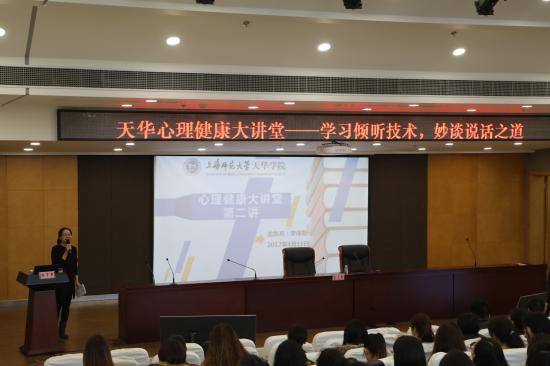 4月11日下午2:40,学保处在晖华楼报告厅隆重举行“天华心理健康大讲堂”第二讲专题讲座,本次讲座由健康学院应用心理学专业杨宇然老师主讲,专题为“学习倾听技术,妙谈说话之道”。健康学院副院长王茜、全体正副辅导员、各二级学院学生心理委员、学生骨干出席了本次培训讲座。讲座由学保处常务副处长刘天翔老师主持。