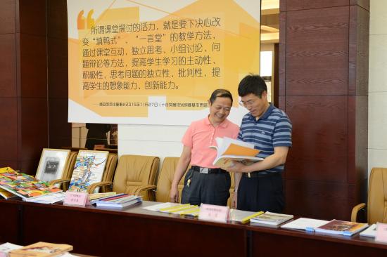 学校领导对这次教学成果展也给予了高度重视, 5月26日上午,校长叶才福、总校监郭伟奇、特别顾问陆建非、副书记许岳、曹云林,副校长陈新斌、朱国权、吴国兴和龚春蕾,以及各二级学院院长等校务委员会领导赴同华楼实地观摩了第一批“活力课堂”试点课程教学成果展。