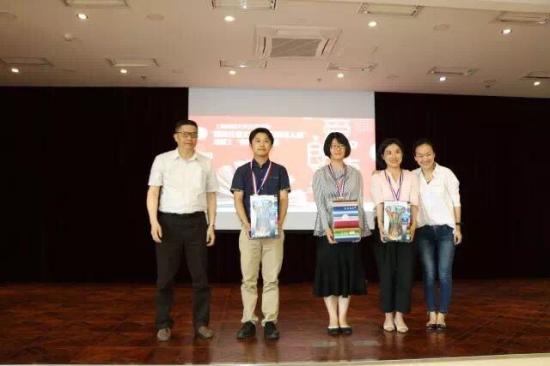 (工会常务副主席曹卫、校长办公室副主任郭伟钧为亲子组获奖选手颁奖)