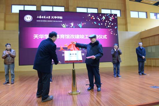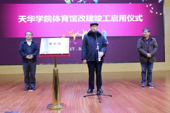 邹荣祥董事长为新改建体育馆竣工启用揭幕,并宣布“天华学院体育馆改建工程竣工,正式启用”。
