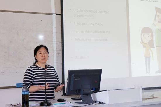 接下来,Gregory Zobel教授与大家分享了“内容创建”的几个教育技术,如ThingLink, Online Chart Tool, Big Huge Labs。王淑艳教授与大家分享了有关“内容分享”、“动画制作”、“评价”等教育技术,如Zoho, Padlet, Powtoon, Vocaroo, ClassDojo, TestMoz, Poll Everywhere, Wenjuanxing。