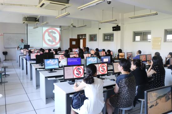 在“互联网+”大时代与学校“活力课堂”教学改革的背景下,2017年9月13日中午12:00—13:00明华楼310举行专题讲座“让教育技术激发课堂活力”。来自美国南密西西比大学的王淑艳教授和来自西俄勒冈大学的Gregory Zobel教授二人联袂为我校教师献上了一场精彩的教育技术分享。50余名教师踊跃报名参加,人事处处长助理李艳艳主持讲座。