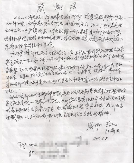 学生们也非常感念老人不畏路途遥远四处寻找他们,学生们都认为自己做了一点小事,却得到了那么有分量的感谢,都被老人的执着找寻与善良所感动,自身也深受教育,他们也都表示今后遇到类似的情况,一定会继续去做自己应该做的事情,从细微之处做起,践行校训,做一个善良执着的实践者。