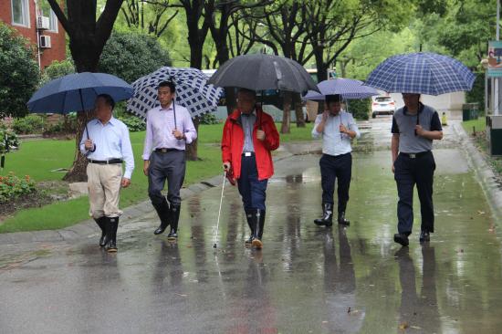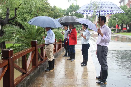 9月份以来,上海地区持续降雨,学校河道水位临近警戒水位,防汛形势不容乐观。邹董事长一行重点检查了校园变电设施、排水设施以及河道水位变化,邹董事长要求行政处和学保处全体工作人员要时刻在位,一旦发生险情,及时靠前处理,确保学校设施和广大师生的人身财产安全。