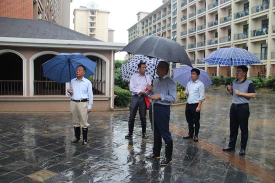 近日,学校周边连降暴雨,校园周围汛情险情突至。9月25日上午,学校董事长邹荣祥、副校长吴国兴、党委副书记兼学保处处长曹云林,深入校园,检查学校防汛工作,行政处副处长邵海波、学保处副处长刘洪伟等职能部门人员陪同。