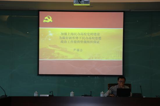 2017年5月12日,党委在明华楼五楼会议中心进行党务干部培训,组织部邀请市民办高校党工委领导尹福会作《加强上海民办高校党的建设,为做好新形势下民办高校思想政治工作提供坚强组织保障》专题报告,党务干部三十余人聆听了报告。