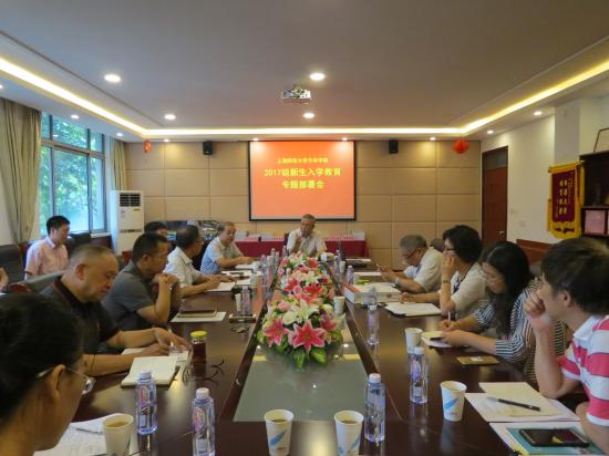 9月7日上午9:00,我校在月华楼270会议室召开了2017级新生入学教育工作专题部署会。校领导高度重视今年新生入学教育工作,董事长邹荣祥、校长叶才福、副校长吴国兴、党委副书记曹云林、校监史文,以及各二级学院院长、总支书记、相关职能处室负责人参加了会议。