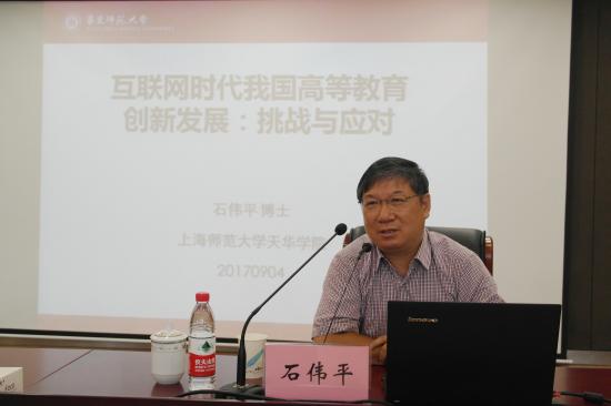 讲座一场连着一场,一场比一场精彩。下午13时许,由著名职业教育专家、我校执行董事长石伟平教授,为广大教职工奉上了一场名为《互联网时代我国职业教育创新发展:挑战与应对》的精彩讲座。石伟平教授从“互联网时代我国产业的发展与变化”开讲,重点就智能制造与我国制造业、互联网+我国服务业的发展与变化两个层面进行深入的分析解读;进而对“互联网时代产业变化对我国职业教育的影响”谈了自己的看法与理解,针对职业学校教育规模结构形态、教育价值取向、就业导向职业教育重心、职业院校专业设置、专业重点、课程结构、专业内涵、专业现代化、创业教育、通识课程内容、教学管理等展开了深入细致的讲解与分析。最后,还就互联网时代对我国职业教育创新发展提出多方位的对策与思考。反思了互联网时代职业院校“专业现代化”、“中本贯通”教育、“活力课堂”教学等内容,提出了应对策略。