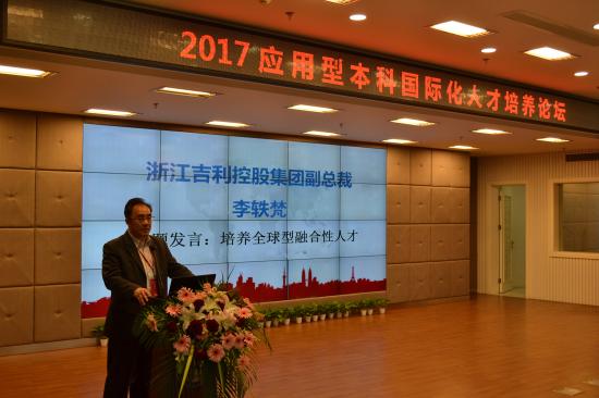 随后,浙江吉利控股集团副总裁李轶梵做了题为“培养全球型融合性人才”的主旨发言。他从吉利集团国际市场开拓的具体做法和自身职业发展经历出发,与大家分享了“融合性人才”的内涵。