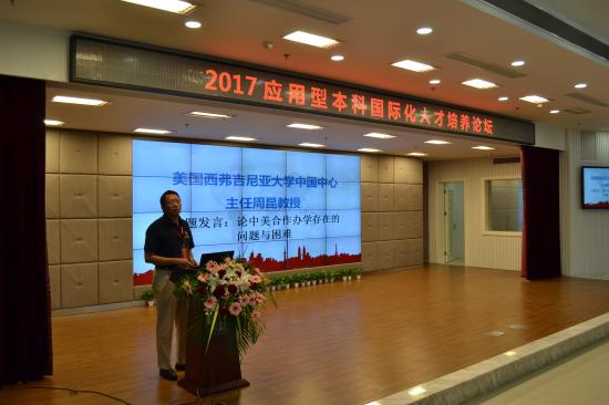 美国西弗吉尼亚大学中国中心主任周昆教授做了题为“论中美合作办学存在的问题与困难”的主旨发言。他提到中美办学存在中美课程设置理论的差异、学生语言能力、入学后的管理问题、毕业后的就业问题等,双方应更加重视,采取有效措施克服中美合作过程中的困难和挑战,力求为国家、为社会提供更完善的办学方式和更全面的人才。