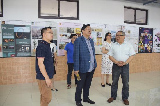 5月26日下午,上海群星职业技术学校校长顾晓光、副校长韩晓明一行26人到访我校,参观艺术设计学院毕业设计展,并进行了交流。艺术设计学院院长王大根、副院长徐子卿、朱花,以及各专业老师热情接到了到访客人。