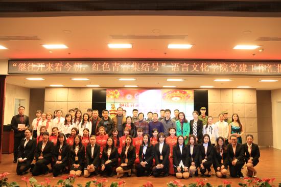 2015年12月15日下午5时,由语言文化学院党总支主办、党建中心承办的“继往开来看今朝,红色青春集结号”党建工作汇报会在晖华楼小剧场隆重举行。校党委书记韩晓玉,校监、语言文化学院院长史文,党委宣传部长齐砚奎,学保处常务副处长刘天翔,学保处副处长包静波,语言文化学院副院长胡雅楠,语言文化学院党总支书记孙超,副书记杨央、刘庆奇,管理学院党总支副书记钟建生,健康学院党总支书记蔡勇永,副书记周建光,以及各二级学院的老师们莅临了本次活动现场。