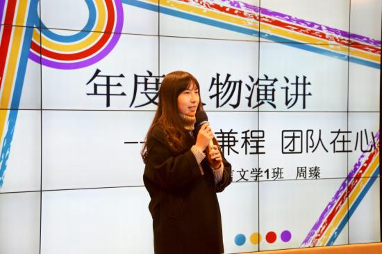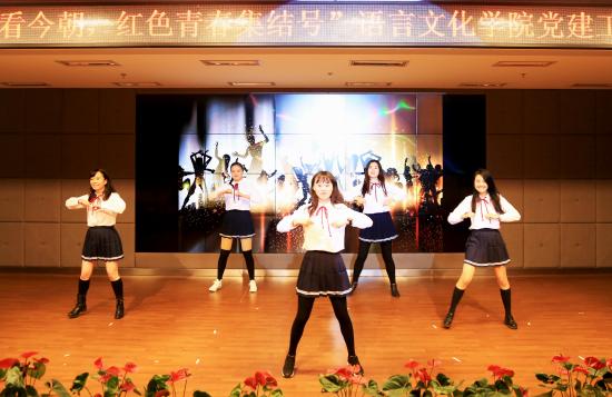 接着,清吟艺术队在舞蹈《相和歌》中,穿越滚滚红尘,青青子衿回顾悠悠历史,盈盈轻舞带来古风清音,诗经的魅力感染了在场的每一个人;语言文化学院 “2015年度人物”代表周臻同学带来《风雨兼程,团队在心》的主题讲演,从个人故事中将团队的分工协作,优势互补,团队成员的风雨同舟,甘苦与共娓娓道来;从语院党建中心举办的以“社会主义核心价值观”为主题的辩论赛中脱颖而出的明星辩手们带来的精彩激烈的辩论对决赛《千辩万化》更是让现场观众见识了语院学子的伶牙俐齿和唇枪舌剑中碰撞出的思想火花,引得现场掌声不断;随后的一段VCR带着所有人领略了第三届党建成员的青春风采,回顾了“红色情怀接力长征”-庆祝抗战胜利70周年红色接力跑活动的精彩瞬间;接下来一群来自东北的姑娘们带来舞蹈《火红的手绢花儿》,掀起了全场汇演的高潮,她们脸上洋溢着热情的笑容,欢快地扭着秧歌,点燃了所有人的热情;临近尾声,借着本次汇报会对本学期开展的 “传承红色精神、纪念抗战胜利70周年”活动的获奖选手进行了颁奖。汇报会的最后由语言文化学院的老师联合党建中心的学生干部带来舞蹈《歌舞绎青春》,展示了满满的青春与活力,引得满堂喝彩。师生合作的节目形式既拉近了老师与学生之间的距离,又展现了教师的风采。汇报会在一曲《明天会更好》中圆满结束,歌声寓意语院党建工作充满希望的美好明天。