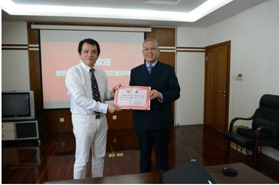 (赖世雄教授与学校领导进行亲切交谈)