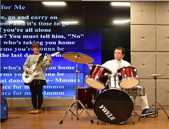 讲座的最后,吴纪维老师和大家分享了如何通过英语歌曲,学好英文。最后,赖世雄教授、吴纪维老师和我校学生乐团一起演奏了英语经典歌曲“Save the last dance for me”。
