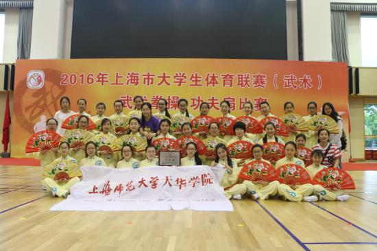 2016年5月21日,上海市大学生体育联赛(武术)武术拳操、功夫扇比赛在上海中医药大学体育馆举行。我校功夫扇队在校领导的关心和支持下,由体育教学部答英娟老师指导并带领参加本次比赛。