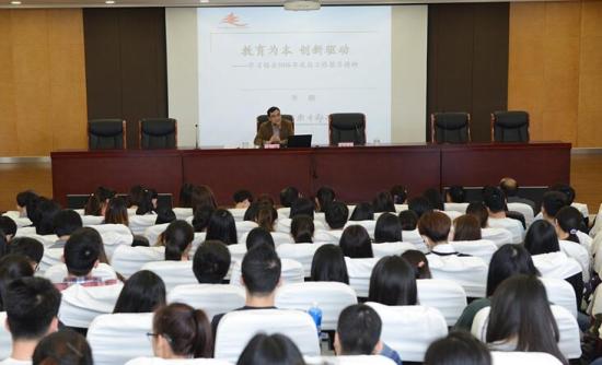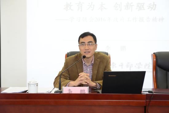 2016年4月22日下午,党委举办党员学习报告会,“教育为本,创新驱动——学习领会2016年政府工作报告精神”讲座在晖华楼报告厅隆重举行,讲座由中国浦东干部学院李鹏博士主讲,党委书记韩晓玉主持,全校300余师生党员聆听。